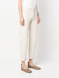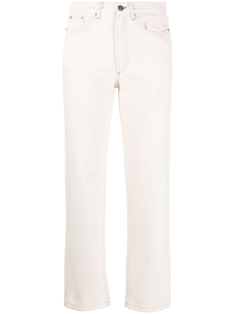 straight-leg cropped jeans A.P.C.'s straight-leg jeans are a testament to the brand's understated aesthetic. This high-waisted pair is rendered in an off-white hue and accentuated by contrast stitching, while the cropped length adds a contemporary touch. Highlights - Off-white - Cotton - High waist - Belt loops - Concealed fly and button fastening - Classic five pockets - Contrast stitching - Straight leg - Cropped Imported Composition Cotton 100% SIZE & FIT Model measurements Height 5 ft 10 in(1.78 m) Bust/Chest 31.49 in(80 cm) Hips 36.22 in(92 cm) Waist 25.59 in(65 cm) FittingInformation Designed for a straight-leg fit, these jeans allow for a close fit at the waist and an unrestricted and comfortable fit over the leg Sturdy and hard-wearing, this denim piece offers no stretch This piece fits true to size – take your usual size Washing instructions Machine Wash
