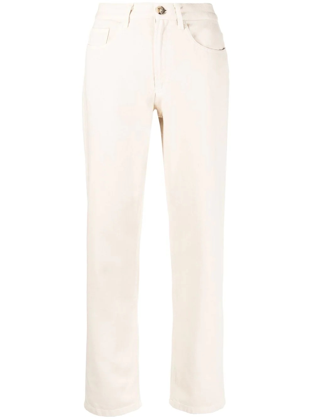 straight-leg high-waisted trousers cream white cotton high waist front button and zip fastening belt loops straight leg classic five pockets Imported Composition Cotton 100% SIZE & FIT Model measurements Height 5 ft 10 in(1.77 m) Bust/Chest 29.92 in(76 cm) Hips 34.25 in(87 cm) Waist 23.62 in(60 cm) FittingInformation This piece fits true to size. We recommend you get your regular size Cut for a slim fit Made with a mid-weight non-stretch fabric Washing instructions Machine Wash