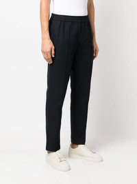 straight-leg track pants Highlights - Navy blue - Cotton - Elasticated waistband - Two side slit pockets - Rear welt pocket - Straight leg Imported Composition Cotton 100% SIZE & FIT Model measurements Height 6 ft 2 in(1.89 m) Bust/Chest 37.79 in(96 cm) Hips 37 in(94 cm) Waist 29.92 in(76 cm) FittingInformation Designed for a tapered leg, offering a loose unrestricted fit over the leg with a closer fit towards the ankle The elasticated waist allows for a comfortable fit Made from a midweight non-stretch fabric This piece fits true to size – take your usual size Washing instructions Dry Clean Only