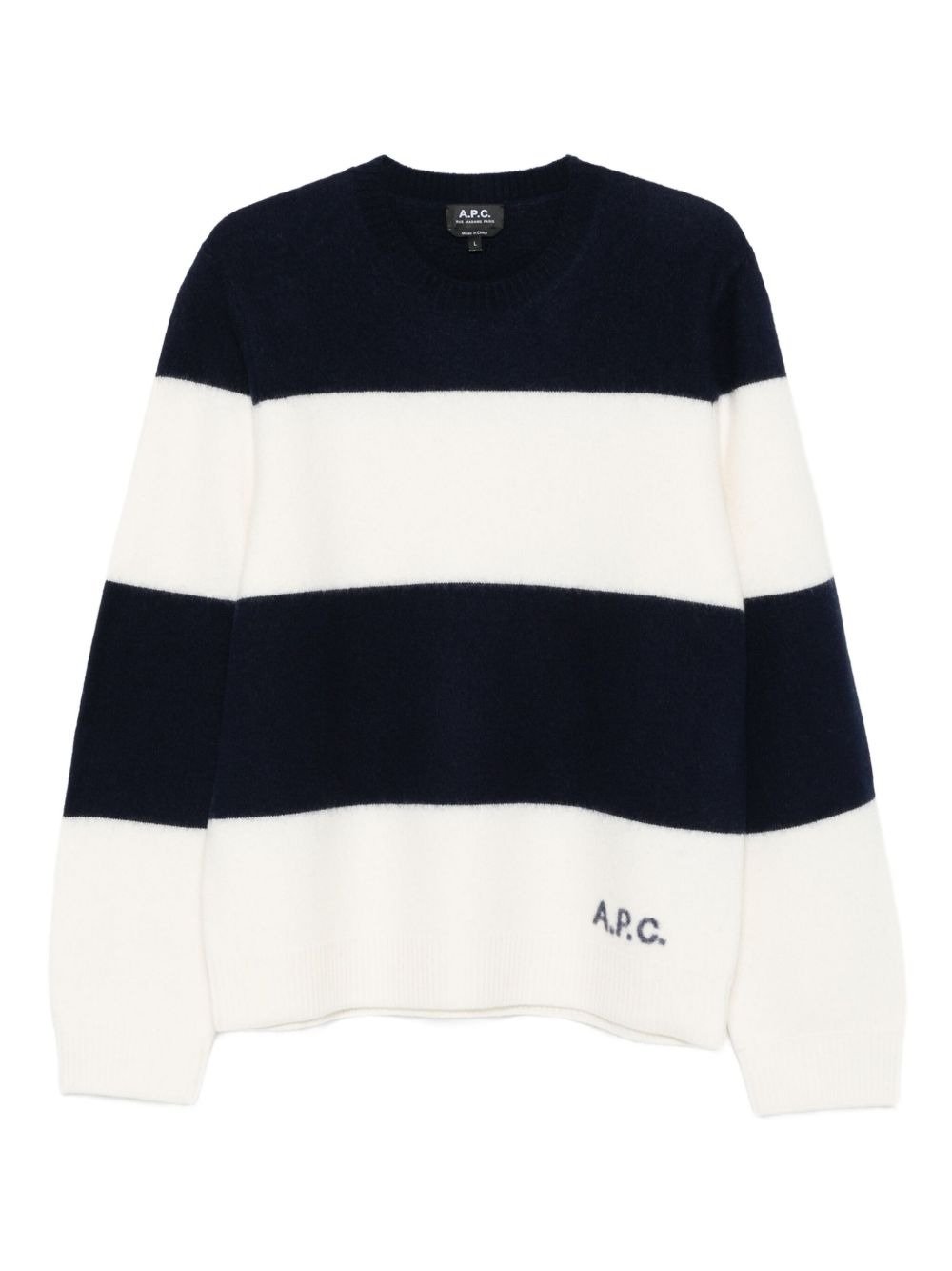 striped crew-neck sweater Highlights - Blue - White stripes - Crew neck - Long sleeves Imported Composition Wool 100% SIZE & FIT Model measurements Height 6 ft 2 in(1.87 m) Bust/Chest 36.41 in(92.5 cm) Hips 37 in(94 cm) Waist 29.52 in(75 cm) FittingInformation Designed for a relaxed fit, this piece allows for comfort and movement when worn The ribbed hem offers a close, comfortable fit Made with a midweight knit, this piece offers some stretch Washing instructions Hand Wash
