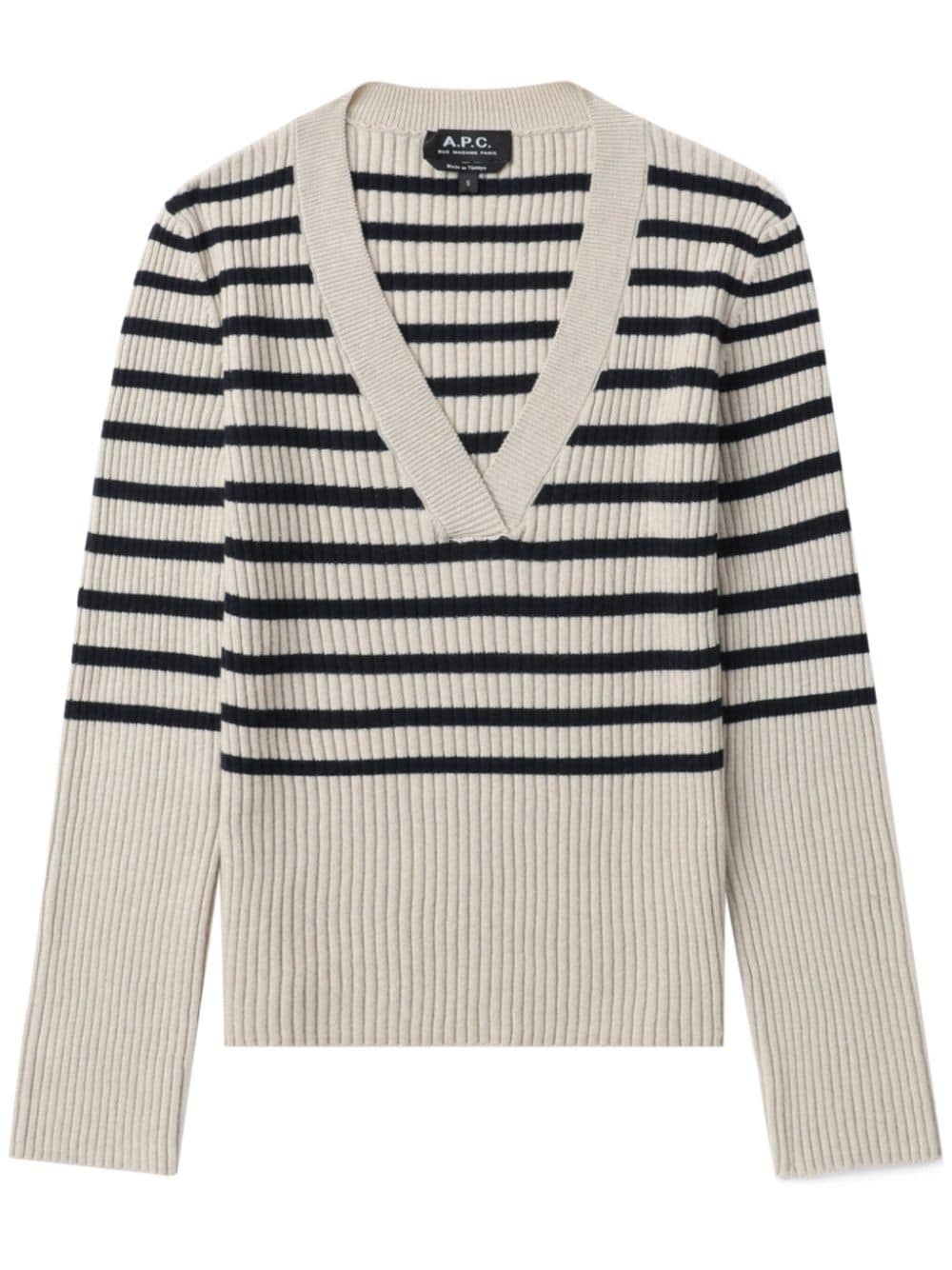 striped ribbed-knit jumper