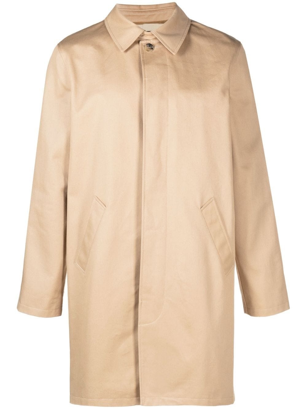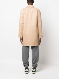 Ville cotton raincoat Parisian brand A.P.C.'s minimal aesthetic is exemplified by their SS23 Ville raincoat. Constructed from waterproof cotton in a timeless beige hue, the single-breasted silhouette is detailed with a buttoned tab at the neck and raglan sleeves at the rear. Imported Composition Outer: Cotton 100% Lining: Viscose 100% SIZE & FIT Model measurements Height 6 ft 2 in(1.88 m) Bust/Chest 36.61 in(93 cm) Hips 35.82 in(91 cm) Waist 27.95 in(71 cm) Measurement CHEST 43.3 in(110 cm) SLEEVE LENGTH 26.37 in(67 cm) Shoulder Width 18.5 in(47 cm) WAIST 44.09 in(112 cm) FittingInformation This piece fits true to size. We recommend you get your regular size Cut for a loose fit Made with a mid-weight non-stretch fabric Washing instructions Dry Clean Only