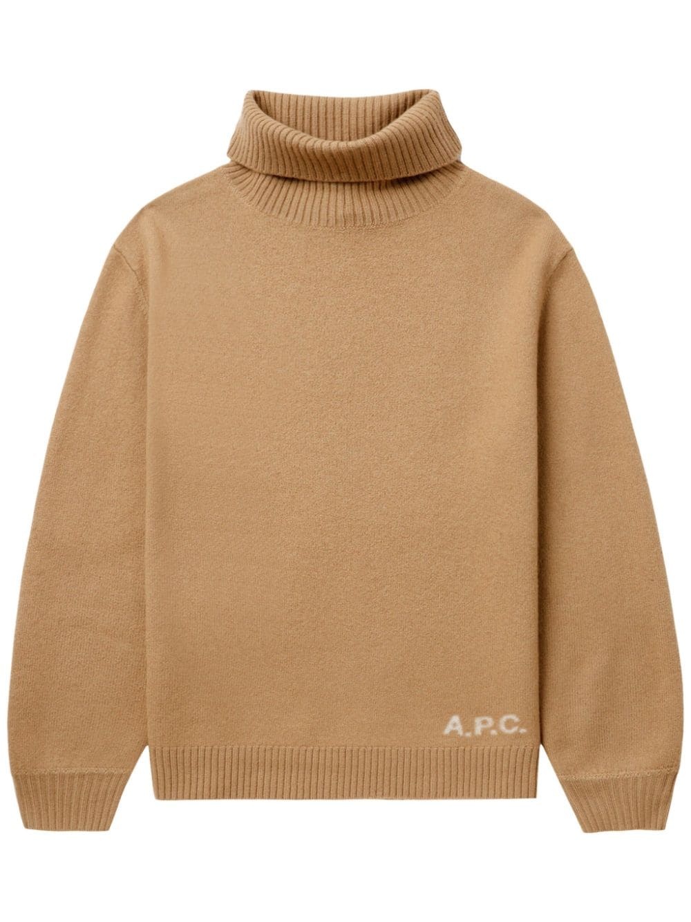 Walter jumper Highlights - Camel brown - Virgin wool - Fine knit - Ribbed-knit edge - Roll neck - Drop shoulder - Long sleeves - Jacquard logo motif - Ribbed cuffs and hem Imported Composition Virgin Wool 100%