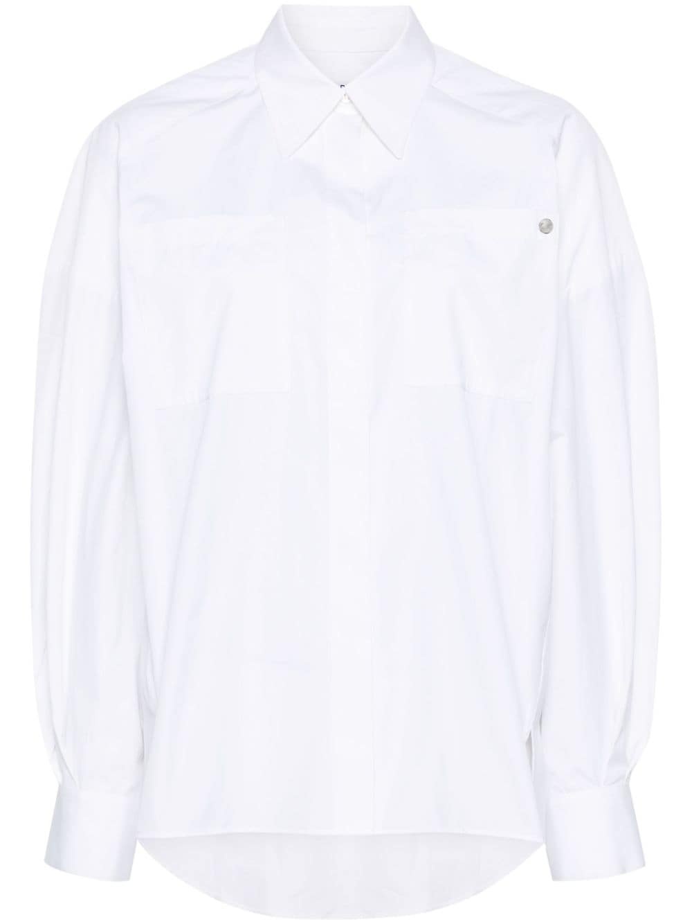 Warvol poplin shirt Highlights - White - Cotton - Poplin texture - Pointed flat collar - Two chest patch pockets - Drop shoulder - Long sleeves - Buttoned cuffs - High-low hem - Front button fastening Imported Composition Cotton 100% SIZE & FIT Model measurements Height 5 ft 11 in(1.8 m) Bust/Chest 32.67 in(83 cm) Hips 36.22 in(92 cm) Waist 24.4 in(62 cm) FittingInformation Designed to be unstructured, offering a loose fit throughout Made from a midweight non-stretch fabric This piece fits true to size – take your usual size