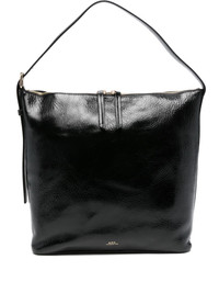 zip-fastening leather shoulder bag
