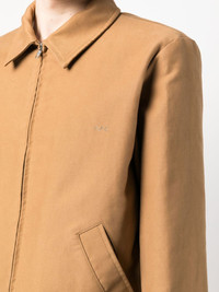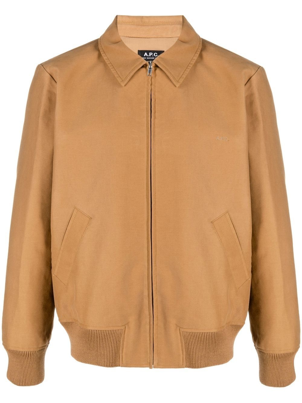 zip-up shirt jacket A.P.C's take on the Harrington jacket has a shirt silhouette, presented here in caramel-hued cotton with a zip-up closure. Imported Composition Outer: Cotton 100%, Wool 40%, Acrylic 40%, Polyamide 2% Lining: Viscose 100% SIZE & FIT Model measurements Height 6 ft 1 in(1.86 m) Bust/Chest 34.64 in(88 cm) Hips 35.43 in(90 cm) Waist 27.55 in(70 cm) Measurement CHEST 41.73 in(106 cm) SLEEVE LENGTH 25.59 in(65 cm) Shoulder Width 18.11 in(46 cm) FittingInformation This piece fits true to size. We recommend you get your regular size Cut for a loose fit Made with a mid-weight non-stretch fabric Washing instructions Dry Clean Only