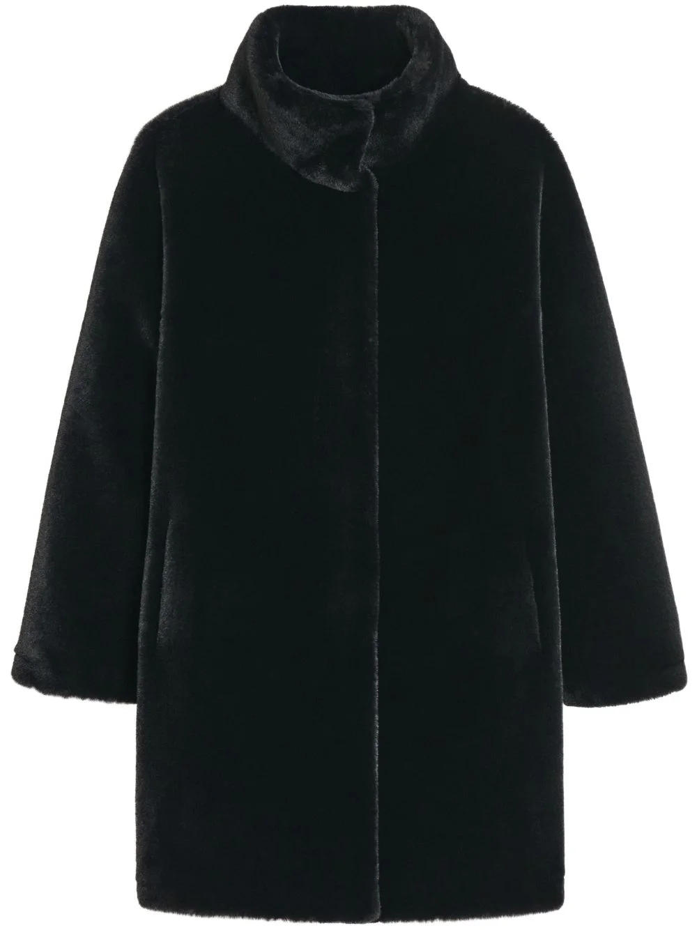 high-neck faux fur coat Highlights - Black - Faux-fur design - High neck - Concealed front fastening - Two side slit pockets - Long sleeves - Straight hem Imported Composition Polyester 100% Washing instructions Dry Clean Only