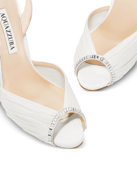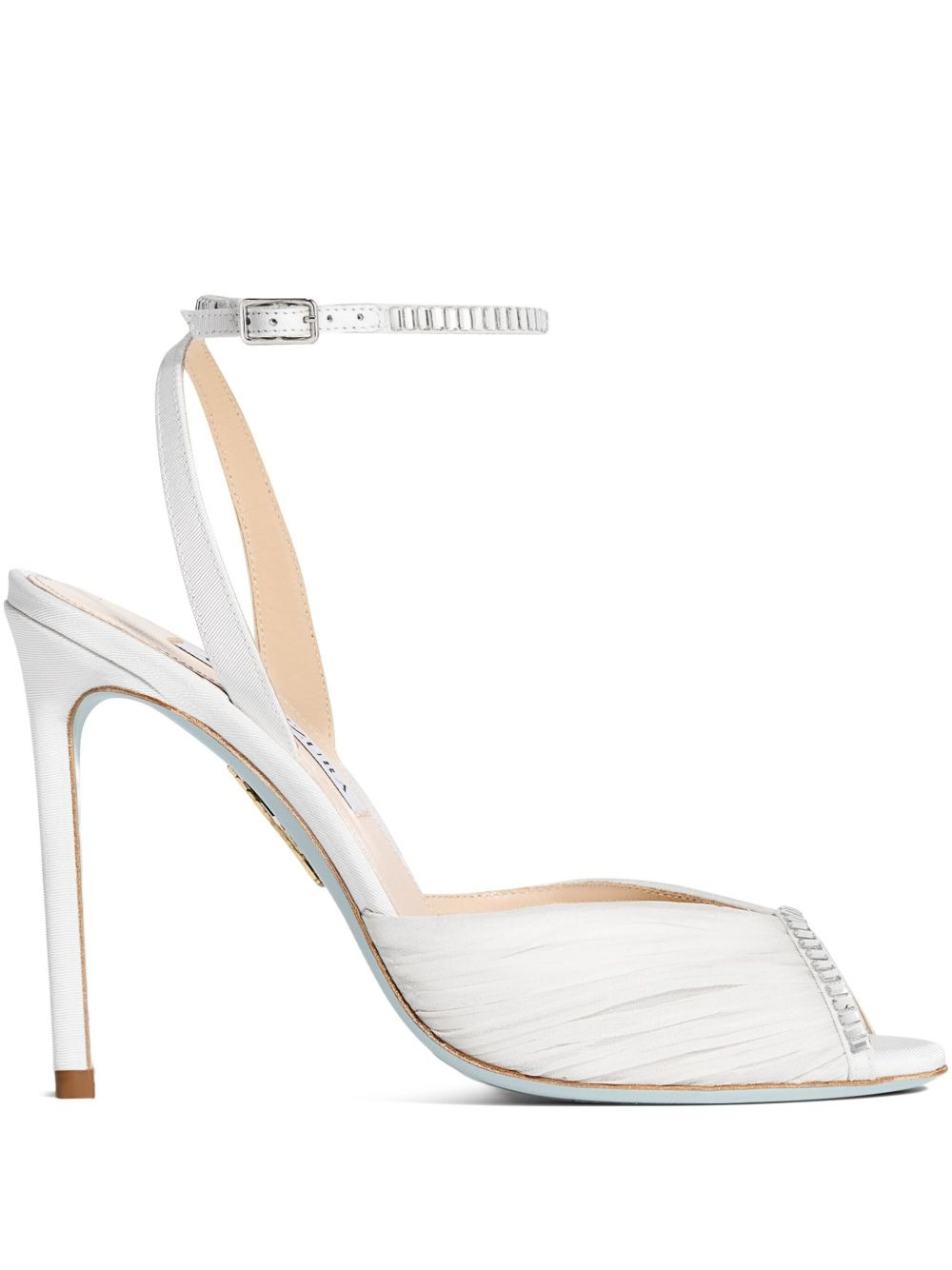 105 Be Mine sandals Highlights - White - Pleated fabric - Crystal embellishments - Ankle strap - Stiletto heel - Peep toe Made in Italy Composition Outer: Mesh 100% Lining: Mesh 100%, Leather 100% Sole: Leather 100% SIZE & FIT Measurement HEEL 4.13 in(10.5 cm)
