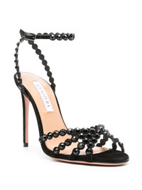 105m Tequila sandals Highlights - Black - Calf suede - Crystal embellishment - Buckle-fastening ankle strap - 105mm stiletto heel - Almond open toe - Branded leather insole - Leather lining - Leather sole Made in Italy Composition Suede 100% SIZE & FIT Measurement CIRCUMFERENCE 10.23 in(26 cm) HEEL 4.13 in(10.5 cm) HEIGHT 2.36 in(6 cm) Sole height 0.55 in(1.4 cm)