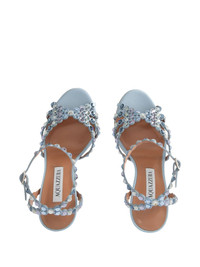 105mm Tequila crystal-embellished sandals Highlights - Blue - Leather - Crystal embellishments - Ankle strap - Stiletto heel Made in Italy Composition Outer: Leather 100% Lining: Calf Leather 100% Sole: Calf Leather 100% SIZE & FIT Measurement HEEL 4.13 in(10.5 cm)