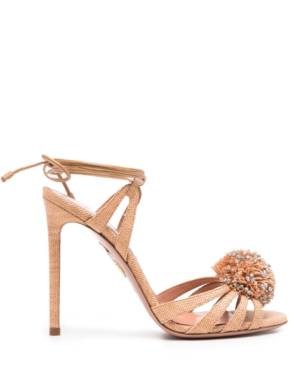 110mm Movida crystal-embellished pom-pom sandals Highlights - Beige - Crystal-embellished pom-pom - Ankle tie fastening - Stiletto heel - Open toe Made in Italy Composition Lining: Fabric 100%, Calf Leather 100% Sole: Calf Leather 100% Outer: Fabric 100% SIZE & FIT Measurement HEEL 4.33 in(11 cm)
