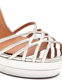 130mm platform-sole caged leather sandals Highlights - Silver - Leather upper - Caged design - Platform sole - Buckle fastening - High block heel Made in Italy Composition Outer: Leather 100% Sole: Calf Leather 100% Lining: Calf Leather 100% SIZE & FIT Measurement HEEL 5.11 in(13 cm)