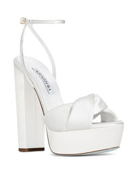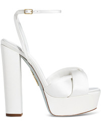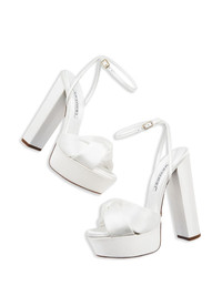 140mm Olie Plateau sandals Highlights - White - Buckle-fastening ankle strap - Twist detailing - Branded footbed - Platform sole Made in Italy Composition Lining: Calf Leather 100% Outer: Satin 100% Sole: Calf Leather 100% SIZE & FIT Measurement HEEL 5.51 in(14 cm)