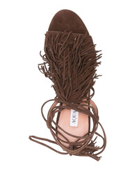 85mm fringed sandals Highlights - Coffee brown - Tie-fastening ankle strap - Stiletto heel - Single toe strap - Almond open toe Made in Italy Composition Suede 100% SIZE & FIT Measurement HEEL 3.34 in(8.5 cm)