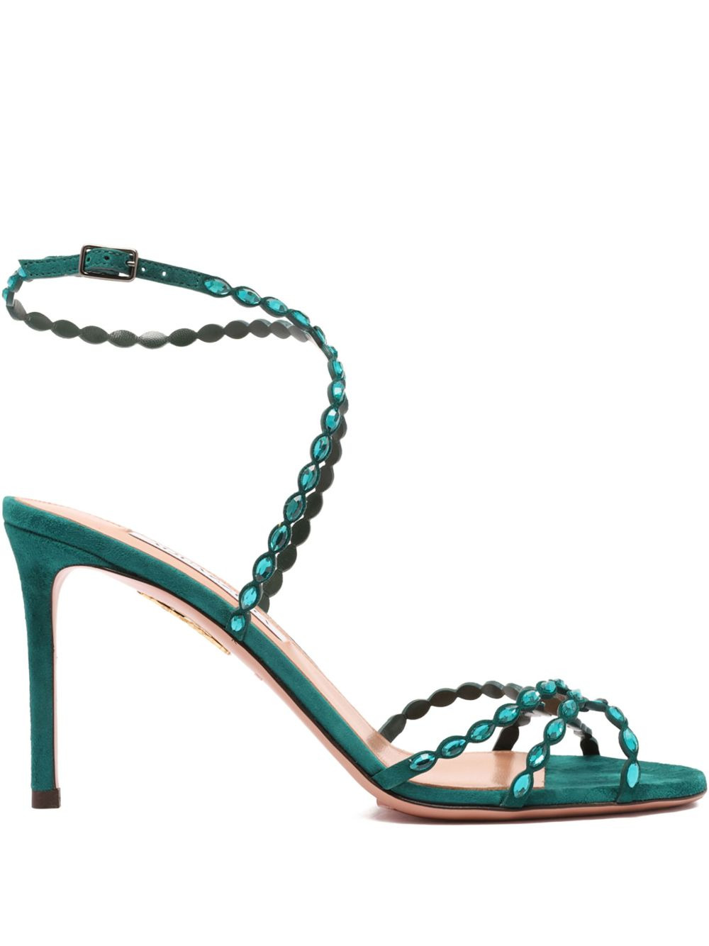 85mm Love Struck sandals Highlights - Teal green - Suede - Ankle strap - Stiletto heel - Open toe Made in Italy Composition Sole: Leather 100%, Rubber 100% Outer: Polyester 100%, Suede 100% Lining: Suede 100%, Leather 100% SIZE & FIT Measurement HEEL 3.34 in(8.5 cm)