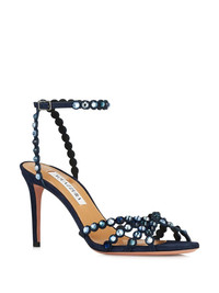 85mm Tequila sandals Highlights - Midnight blue - Buckle-fastening ankle strap - Crystal embellishment - Signature pineapple motif - Branded footbed Made in Italy Composition Sole: Calf Leather 100% Lining: Calf Leather 100% Outer: Calf Suede 100% SIZE & FIT Measurement HEEL 3.34 in(8.5 cm)