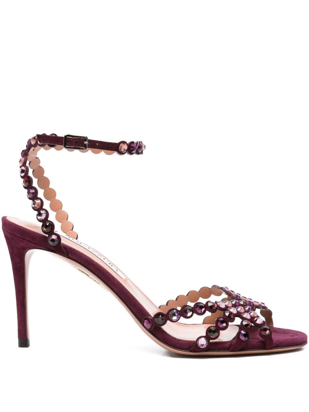 90mm embellished scalloped-edges heeled sandals Highlights - Red - Calf leather - Embellished scalloped edged straps - Ankle strap - Stiletto heel Made in Italy Composition Lining: Calf Leather 100% Sole: Rubber 100%, Calf Leather 100% Outer: Calf Suede 100%, glass 100% SIZE & FIT Measurement HEEL 3.54 in(9 cm)