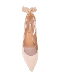 85mm Bow Tie pumps Based in Florence, Aquazzura takes inspiration from the traditional craftsmanship and creates glamorous, modern designs and extremely appealing footwear, as seen in these light beige suede Bow Tie pumps. Highlights - Light beige - Suede - Bow detailing - Cut-out detailing - Pointed toe - Branded leather insole - 105mm stiletto heel Made in Italy Composition Suede 100% SIZE & FIT FittingInformation This piece fits large – take one size down Measurement HEEL 3.58 in(9.1 cm) HEIGHT 6.49 in(16.5 cm) WIDTH 3.42 in(8.7 cm) Washing instructions Specialist Cleaning