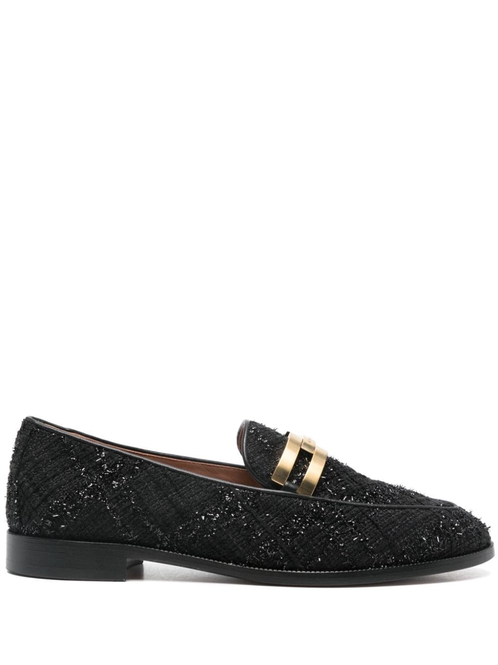 Brandi loafers Highlights - Black - Leather trim - Boucle construction - Slip-on style - Engraved logo - Round toe - Branded leather insole - Leather sole Made in Italy Composition Outer: Fabric 100%, Calf Leather 100% Lining: Calf Leather 100% Sole: Calf Leather 100%, Rubber 100% SIZE & FIT Measurement HEEL 0.78 in(2 cm)