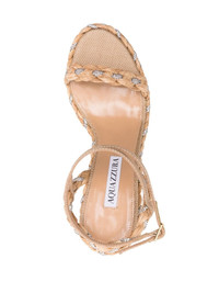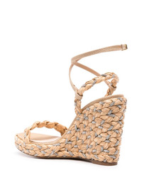 Costiera 120 crystal-embellished cord-trimmed raffia platorm wedge sandals Neutral