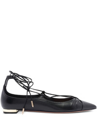 Gabi lace-up glossed-leather point-toe flats Black