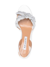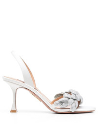 Galactic Flower 75mm sandals Crafted in Italy from calf leather, Aquazurra's Galactic sandals are seen here set atop a 75mm sculpted stiletto heel. Designed with a crystal floral embellishment and a satin finish, they reflect the label's modern approach to design. Made in Italy Composition Suede 100% SIZE & FIT Measurement HEEL 3.14 in(8 cm)