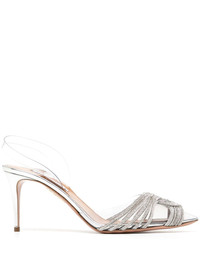 Gatsby Sling pumps These Gatsby Sling pumps from Aquazurra are elegantly presented in a mix of transparent PVC, leather and crystal embellishments. Offering more coverage with a pointed-toe masquerading as open-toe, the pair are finished with a stiletto heel. Made in Italy Composition PVC 100% SIZE & FIT Measurement HEEL 3.14 in(8 cm) Sole height 0.07 in(0.2 cm)