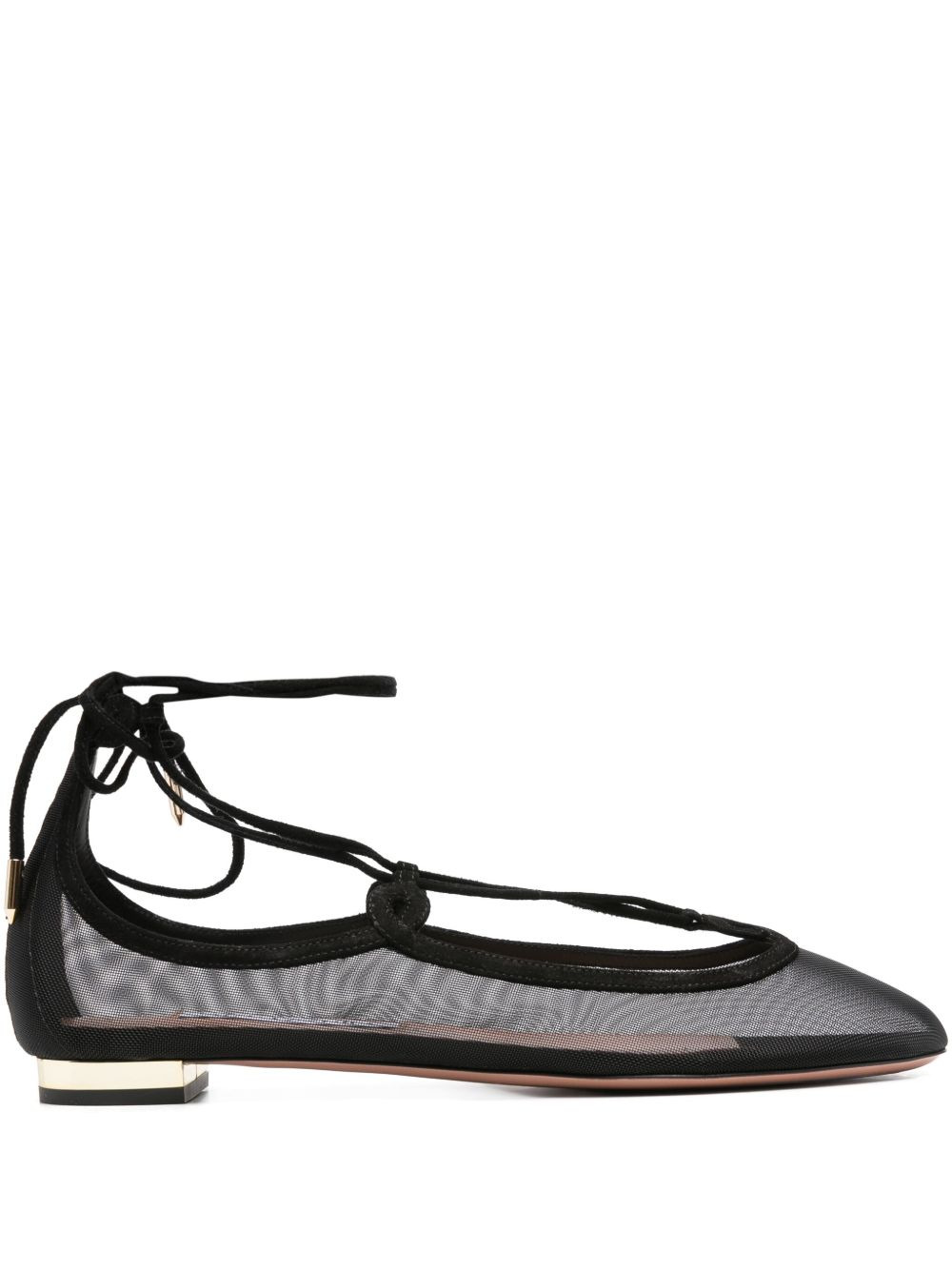 lace-up mesh flat pumps Highlights - Black - Mesh upper - Lace-up fastening - Suede detailing - Almond toe - Gold-tone hardware Made in Italy Composition Outer: Mesh 100%, Calf Suede 100% Lining: Calf Suede 100%, Mesh 100% Sole: Calf Leather 100%