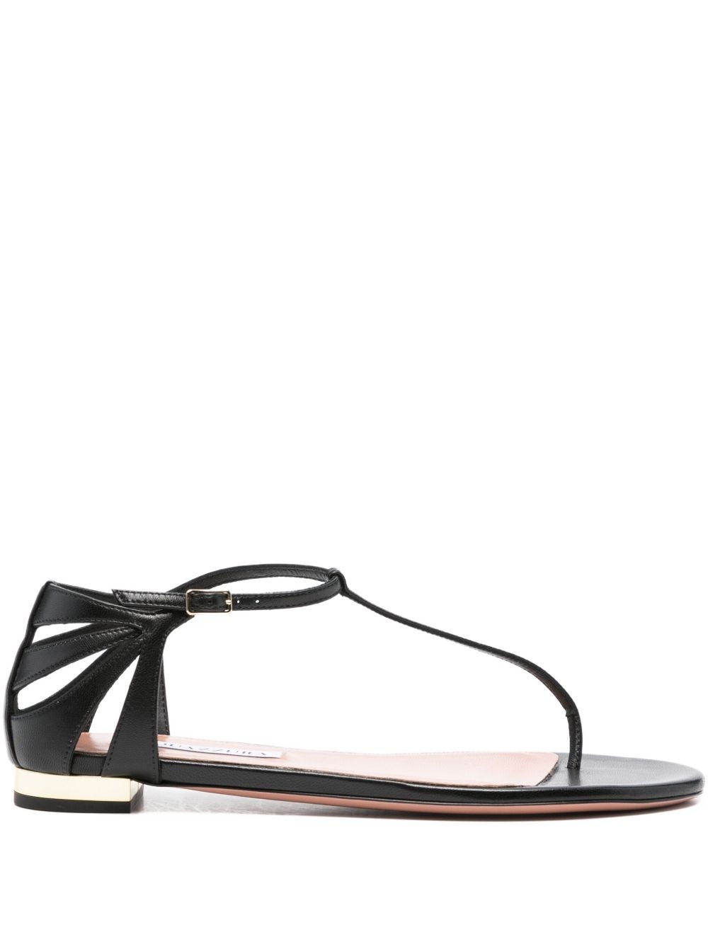 leather fan-cut sandals Highlights - Black - Fan-shaped cut-outs - T-bar strap - Buckle fastening ankle strap - Metallic heel cap Made in Italy Composition Lining: Calf Leather 100% Outer: Calf Leather 100% Sole: Calf Leather 100%
