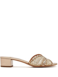 Crystal Lover 35 embellished mesh and leather mules Gold