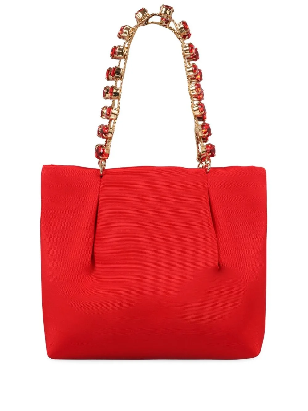 mini Galactic tote bag Highlights - Red - Satin weave - Open top - Crystal-embellished handles - Open top - Internal zip-fastening pocket - Internal logo patch - Main compartment Made in Italy Composition Outer: Viscose 100%, Polyester 100%