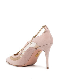 Rumeur 85mm pumps These pumps from Aquazzura spare no detail. Designed with mesh panels, the pair sit atop a high stiletto heel and are trimmed with a gold-tone chain-link detail. Made in Italy Composition Outer: Leather 50%, Rubber 50% Lining: Leather 100% Sole: Leather 100% SIZE & FIT Measurement HEEL 3.14 in(8 cm) Washing instructions Do Not Wash/Do Not Dry Clean