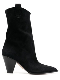 Saint Honore' Bootie 70 Combining the European and modern America aesthetic, Aquazzura is all about classic silhouettes boasted with modern sophistication. These black leather Saint Honore' Bootie 70 from Aquazzura featuring a mid-calf length, a mid high block heel and a pointed toe. Made in Italy Composition Sole: Calf Leather 100% Outer: Lamb Skin 100% Lining: Lamb Skin 100% SIZE & FIT Measurement CIRCUMFERENCE 13.38 in(34 cm) HEEL 3.93 in(10 cm) HEIGHT 7.67 in(19.5 cm) Sole height 0.39 in(1 cm)