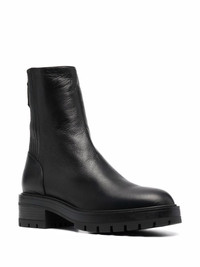 Saint Honore Combat almond-toe boots Aquazurra's Italian-crafted Saint Honore' Combat boots sit atop a chunky rubber lug sole, which adds to their versatility and practicality. Produced from black leather, they feature a rear zip fastening and sleek almond toe. Made in Italy Composition Leather 100% SIZE & FIT Measurement CIRCUMFERENCE 8.66 in(22 cm) HEEL 2.36 in(6 cm) HEIGHT 7.08 in(18 cm) Sole height 1.18 in(3 cm)