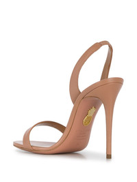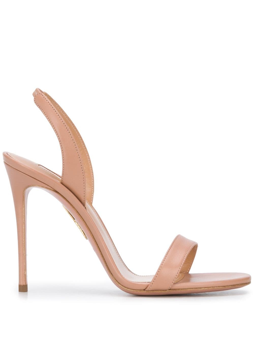 So Nude 105mm sandals When you have a sweet tooth for stiletto heels, Aquazzura is served. Made from supple leather and boasting a handy slingback ankle strap, these sandals will fit your deepest fashionista needs. Great choice. Highlights - Powder pink - Nappa leather - Open toe - Single toe strap - Elasticated slingback strap - Branded leather insole - 105mm stiletto heel - Signature pineapple motif Made in Italy Composition Sole: Calf Leather 100% Lining: Goat Skin 100% Outer: Nappa Leather 100% SIZE & FIT FittingInformation This piece fits large - you might like to get half size down Measurement HEEL 4.33 in(11 cm) Sole height 0.39 in(1 cm) Washing instructions Specialist Cleaning