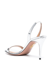 So Nude 85mm sandals Aquazzura's So Nude heels are named after their barely-there silhouette. This 85mm pair is crafted from foiled silver leather and secure with a curved slingback strap. Highlights - Silver-tone - Calf leather - Foiled finish - Almond open toe - Single toe strap - Elasticated slingback strap - Branded leather insole - High stiletto heel - Leather sole - Logo at the sole - Slip-on style Made in Italy Composition Lining: Calf Leather 100%, Polyurethane 100% Sole: Calf Leather 100% Outer: Polyurethane 100%, Calf Leather 100% SIZE & FIT Measurement HEEL 3.34 in(8.5 cm)