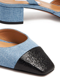 square-toe denim pumps Highlights - Blue - Leather - Denim - Buckle-fastening ankle strap - Branded footbed - Low block heel - Square toe - Leather sole Made in Italy Composition Sole: Leather 100% Lining: Leather 100% Outer: Cotton 80%, Lamb Skin 20%