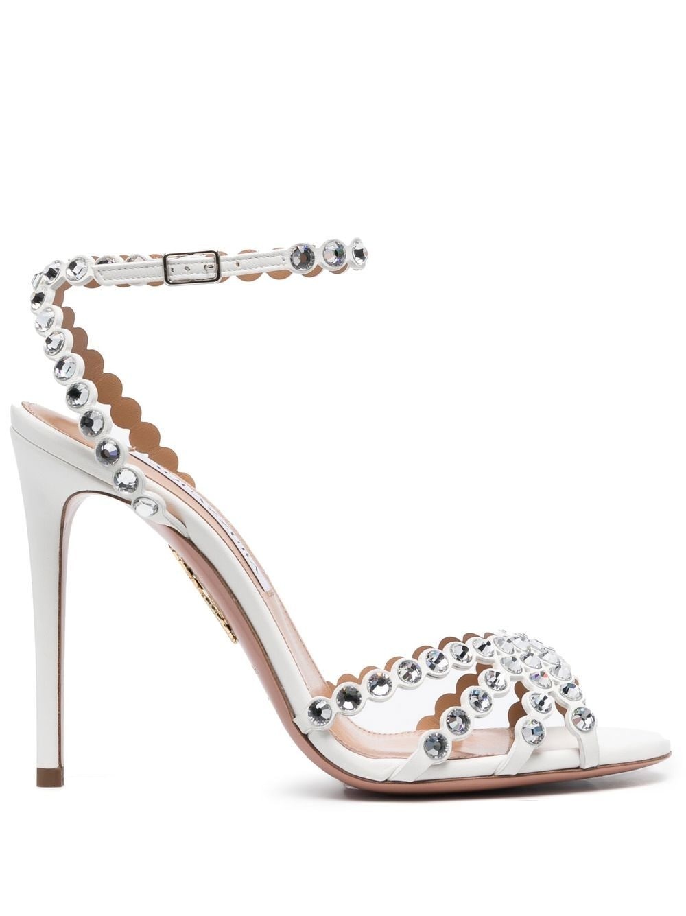 Tequila crystal-embellished 115mm sandals white goatskin crystal embellishment open toe buckle-fastening ankle strap branded leather insole high stiletto heel leather outsole Made in Italy Composition Lining: Goat Skin 100% Outer: Crystal 100%, Lamb Skin 100% Sole: Calf Leather 100% SIZE & FIT Measurement CIRCUMFERENCE 7.87 in(20 cm) HEEL 4.13 in(10.5 cm) HEIGHT 1.96 in(5 cm)