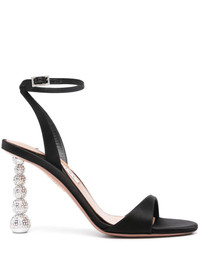 Yes Baby 95mm sandals Highlights - Black - Satin finish - Almond open toe - Branded leather insole - 95mm sculpted heel with crystal embellishment - Buckle-fastening ankle strap Made in Italy Composition Lining: Fabric 100%, Calf Leather 100% Sole: Calf Leather 100% Outer: Fabric 100% SIZE & FIT Measurement HEEL 3.74 in(9.5 cm)
