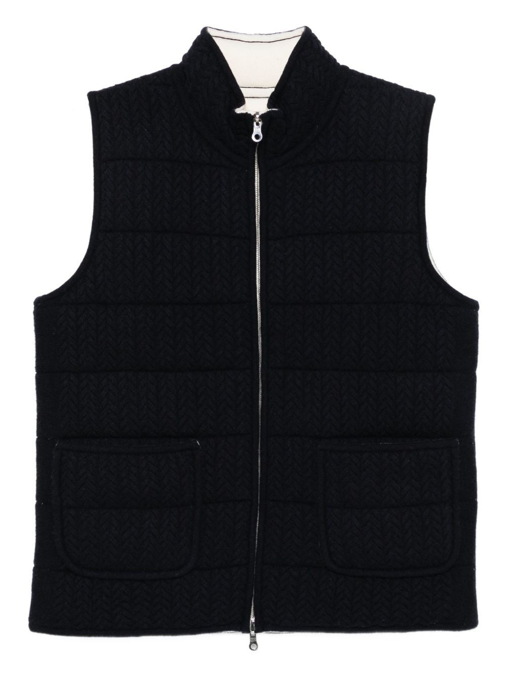 herringbone padded gilet Highlights - Black - Herringbone pattern - Front zip fastening - Quilted design - Front chest pockets - Reversible Imported Composition Cashmere 100% SIZE & FIT Model measurements Height 6 ft 2 in(1.87 m) Bust/Chest 36.41 in(92.5 cm) Hips 37 in(94 cm) Waist 29.52 in(75 cm) Washing instructions Dry Clean Only