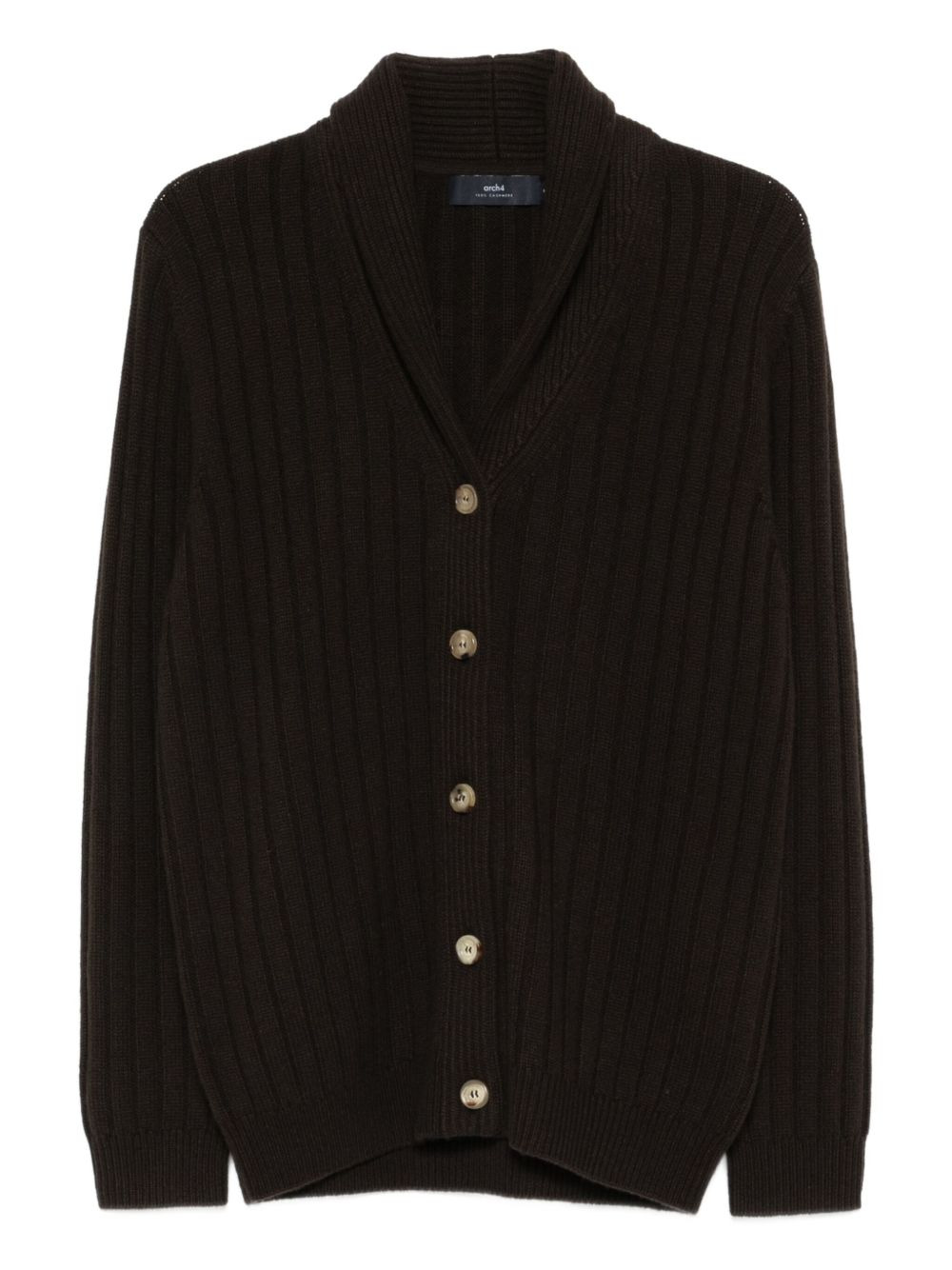Mr Denver ribbed shawl-collar cardigan Highlights - Brown - Ribbed knit - Shawl collar - Button front fastening - Long sleeves - Straight hem Imported Composition Cashmere 100% SIZE & FIT Model measurements Height 6 ft 0 in(1.84 m) Bust/Chest 37.79 in(96 cm) Hips 37 in(94 cm) Waist 31.49 in(80 cm) Washing instructions Read Manufacturer Guidelines