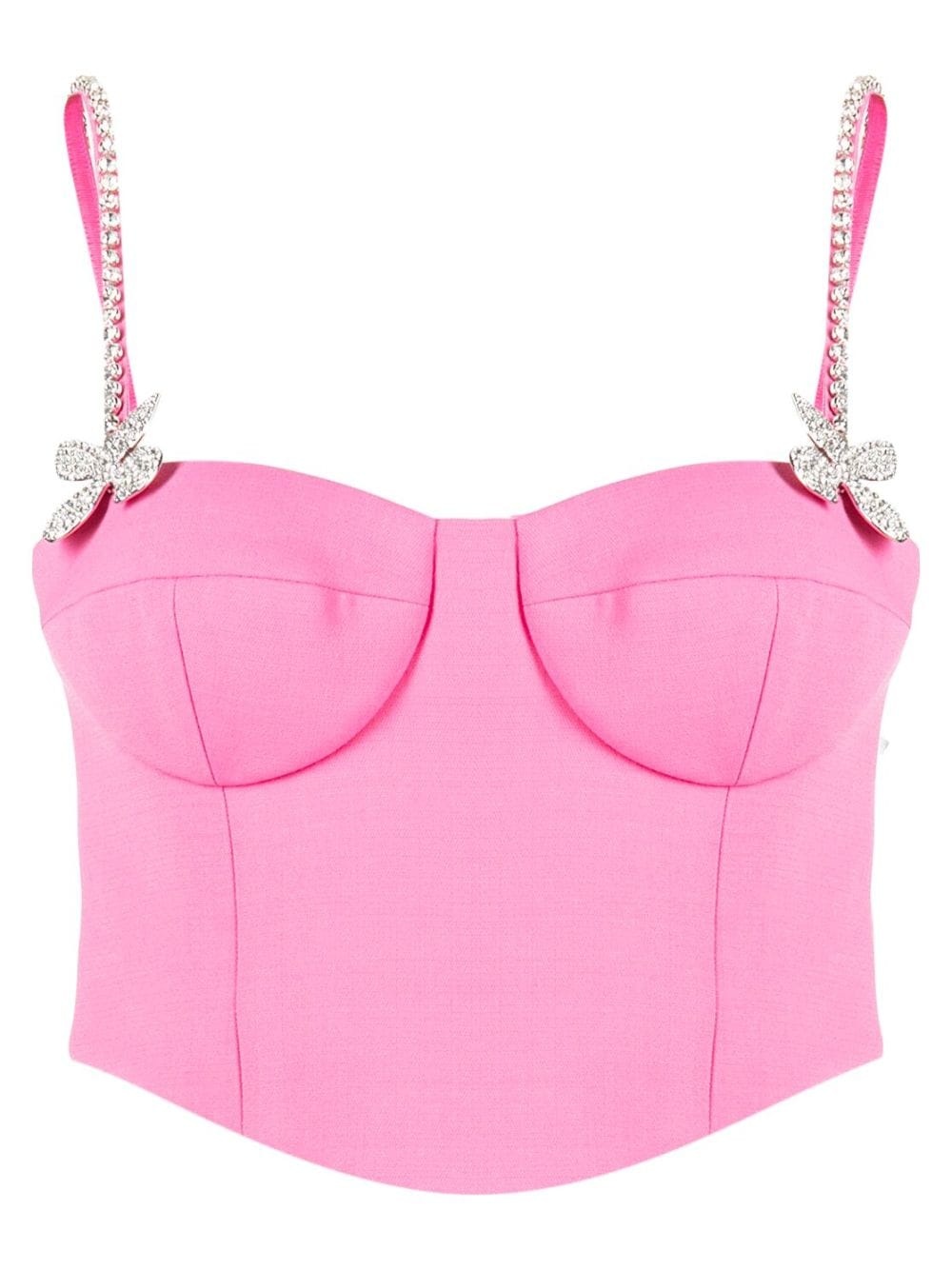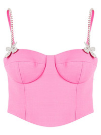 butterfly-applique wool bustier top Highlights - Bubblegum pink - Virgin wool - Bustier-style neckline - Applique detail - Crystal embellishment - Sweetheart neck - Moulded cup - Adjustable spaghetti straps - Rear zip fastening - Curved hem - Cropped Imported Composition Virgin Wool 99%, Lycra 1% SIZE & FIT Model measurements Height 5 ft 10 in(1.77 m) Bust/Chest 31.49 in(80 cm) Hips 35.43 in(90 cm) Waist 25.19 in(64 cm) FittingInformation Designed for a close fit throughout The adjustable shoulder straps allow for a preferred fit when worn Made from a midweight non-stretch fabric, this piece offers minimal elasticity when worn This piece fits true to size – take your usual size Washing instructions Dry Clean Only