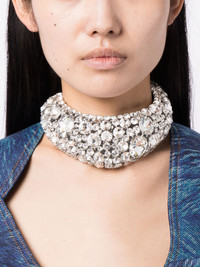 Crystal Bone choker necklace Highlights - Silver-tone - Brass - Glass crystal embellishment - Engraved logo - Pull-on style - Concave band Imported SIZE & FIT Model measurements Height 5 ft 10 in(1.77 m) Bust/Chest 28.74 in(73 cm) Hips 35.82 in(91 cm) Waist 24.4 in(62 cm) Measurement Length when open 5.9 in(15 cm) WIDTH 2.75 in(7 cm)