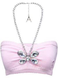 Crystal Butterfly knitted bandeau Highlights - Light pink - Organic cotton-cashmere blend - Knitted construction - Halterneck - Lobster claw fastening - Crystal embellishment - Ribbed trim - Sleeveless - Cropped Made in Italy Composition Organic Cotton 90%, Cashmere 10%