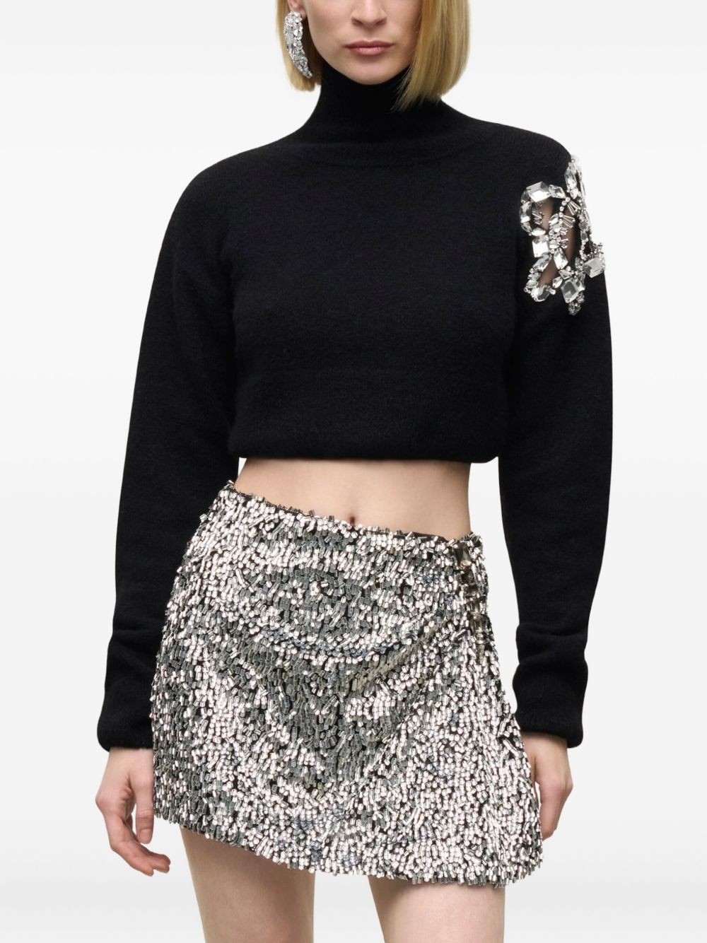 CRYSTAL CLUSTER FLOWER CROPPED TURTLENECK SWEATER