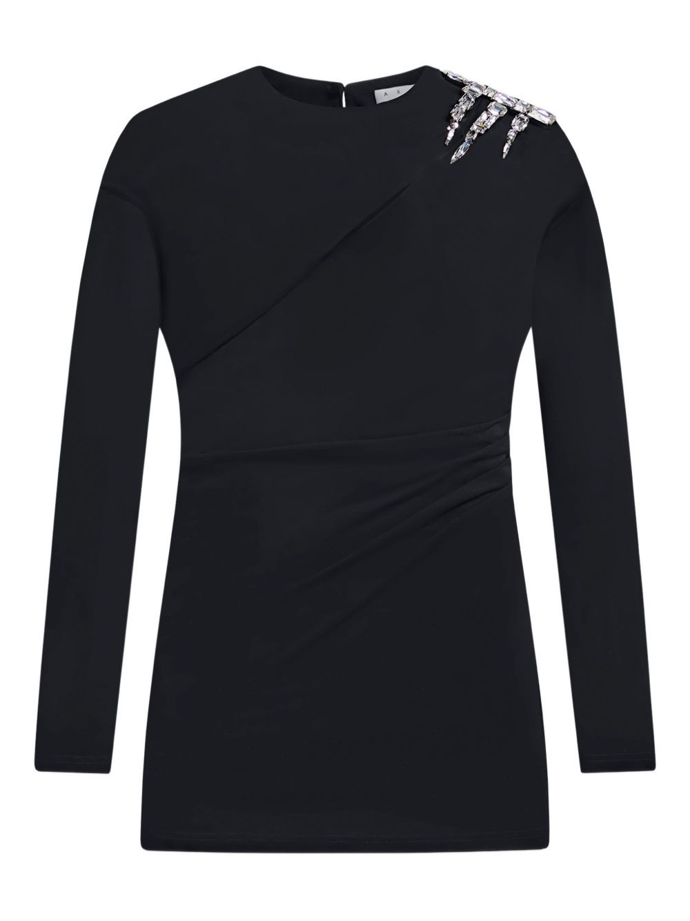 crystal draped long-sleeve mini dress Highlights - Black - Crystal embellishment - Draped detail - Long sleeves - Round neck - Mini length Imported Composition Crystal 100%, Viscose 92%, Elastane 8%