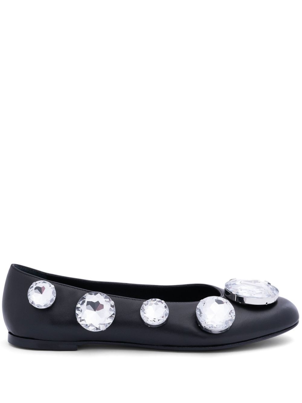 crystal-embellished ballerina shoes Highlights - Black - Calf leather - Crystal embellishment - Silver-tone logo plaque - Round toe - Slip-on style - Low heel - Flat rubber sole Made in Italy Composition Leather 100%