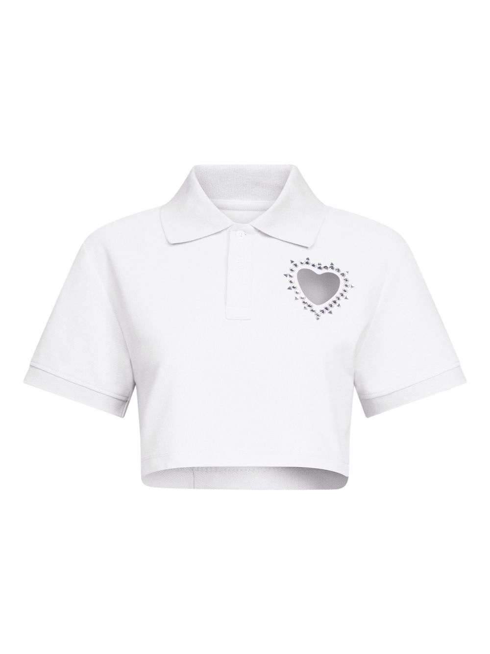 CRYSTAL HEART CUTOUT CROPPED POLO