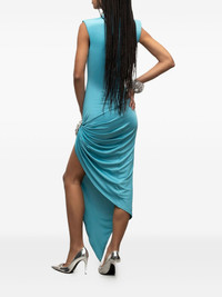 crystal-embellished draped midi dress Highlights - Teal blue - Crystal embellishment - Draped design - High neck - Sleeveless - Asymmetrical hem Imported Composition Polyester 95%, Elastane 5% Washing instructions Read Manufacturer Guidelines