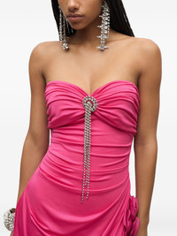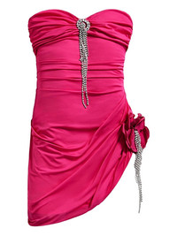 crystal-embellished draped mini dress Highlights - Fuchsia - Draped fabric - Crystal embellishment - Strapless neckline - Asymmetrical hem - Floral detail Imported Composition Polyester 95%, Elastane 5% Washing instructions Read Manufacturer Guidelines